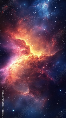 A colorful depiction of a vibrant cosmic nebula in space