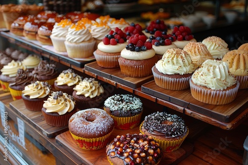 A Colorful Display of Freshly Baked Cupcakes and Donuts in a Bakery