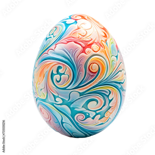 A colorful easter egg with a pastel design sits isolated on a transparent background