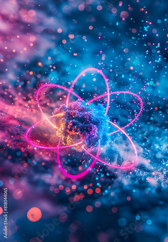 A colorful galaxy with a pink and purple flower in the center. The flower is surrounded by a blue and purple background. The image has a dreamy and whimsical mood, with the bright colors