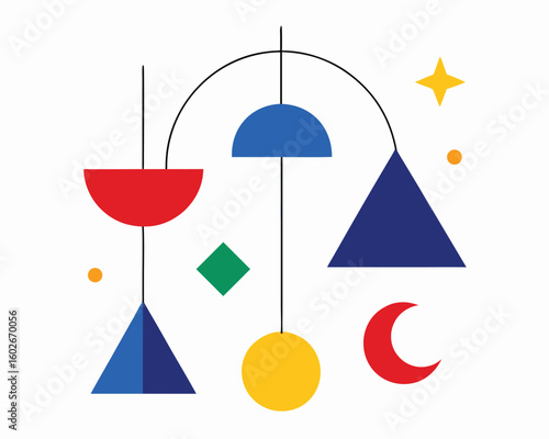 A colorful geometric baby mobile isolated on white background Ai Generated