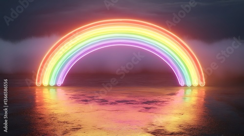 A Colorful Glowing Rainbow Arching Against a Dark Moody Background