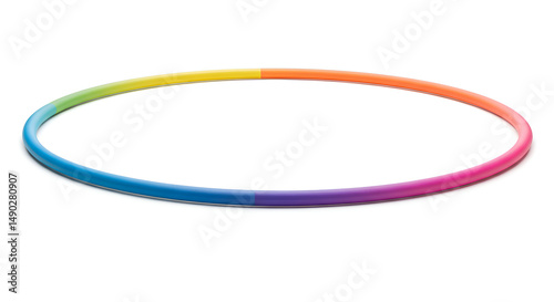 A colorful hula hoop, assembled and placed on white background