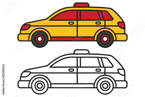 A Colorful Illustration of a Taxi Cab and Its Outline for Coloring