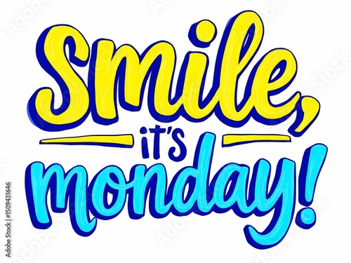A colorful illustration with the text smile it's monday on a white background