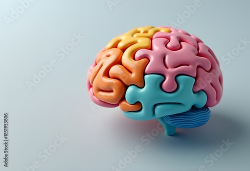 A colorful puzzle in the form of a brain model