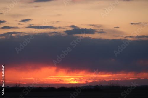 A colorful sunset just outside of Saskatoon, Saskatchewan, Canada