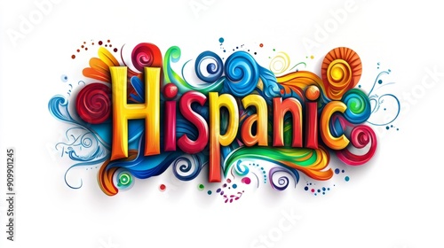 A colorful text Hispanic design on white background. National hispanic heritage month festival, Latin america culture, tradition and art.