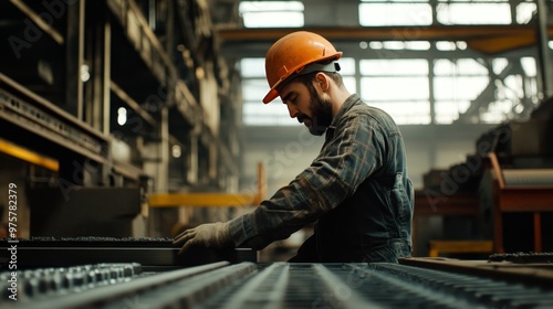 A construction worker in a hard hat operating heavy machinery with precision and care