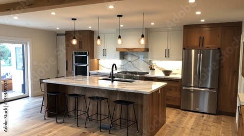 A contemporary kitchen renovation remodeling featuring a center .