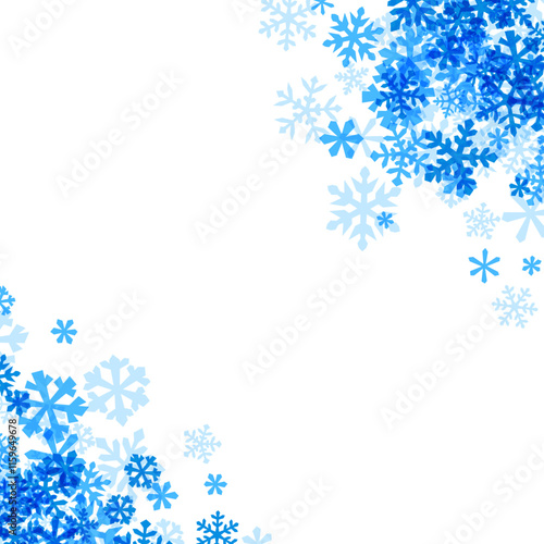 A corner arrangement of blue snowflakes on a white background. Ideal for seasonal and holiday-themed creative projects.