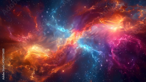 A cosmic dance of colliding galaxies, vibrant colors and swirling stars, viewed from a distant star system, bright light bursts, and ethereal gas formations,