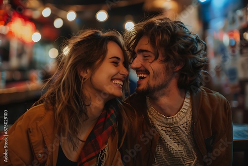 A Couple Giggling While Dancing Together in a romantic mode smiling on the faces