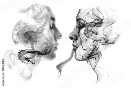 A couple smoking with smoke coming out of their mouths. Suitable for health and lifestyle concepts