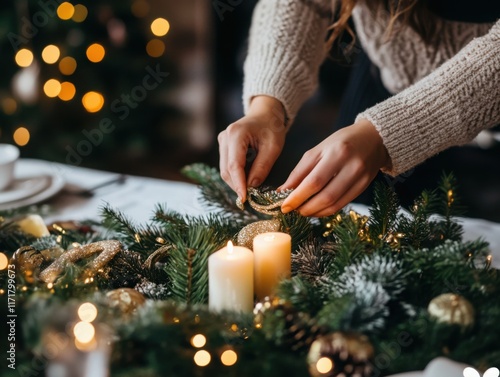 A cozy and elegant holiday dining table setting process, beautifully decorated with handmade ceramics and festive details.