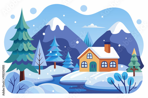 A Cozy Cabin Nestled in a Snowy Mountain Landscape