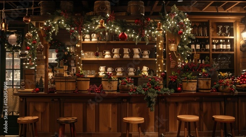A cozy coffee bar decorated for Christmas