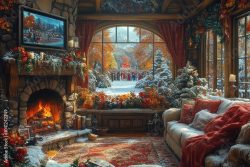 A cozy living room with a fireplace. Generative AI