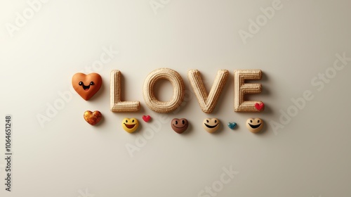 A creative emoji collage spells out 'IIII LOVE UUUU' using a mix of glowing hearts and smiley faces, displayed on a clean, neutral backdrop