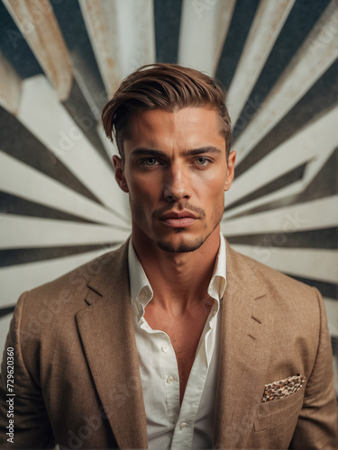 A creative fashion portrait of a handsome young man in surreal settings. Ideal for fashion events and creative campaigns