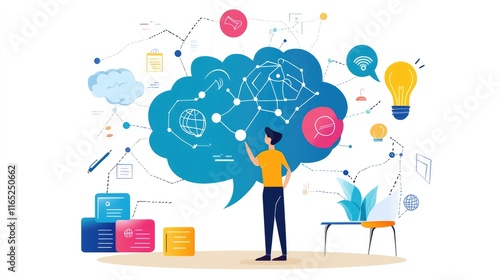 a creative mind map chart clipart, brainstorming process element, colorful connected nodes, flat design, isolated on white background
