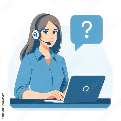 a customer service representative, a woman in a headset, engaging with a client over her laptop