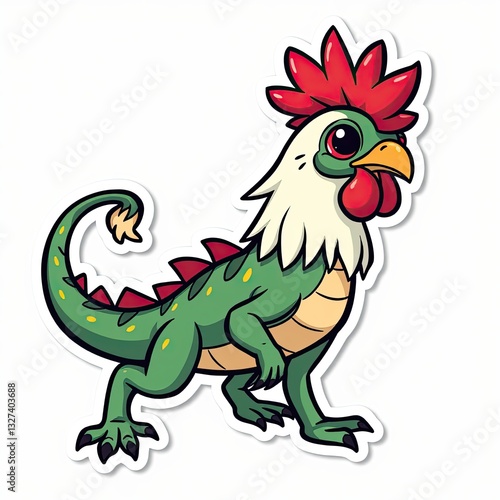 A cute cartoon rooster, a funny farm bird with a happy smile, waving its tail