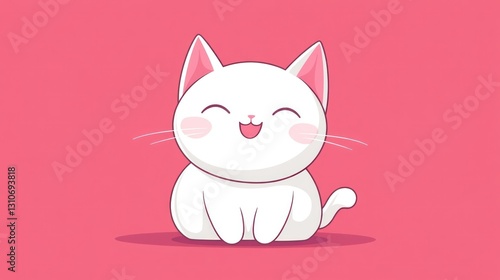 A cute cartoon white cat sitting with a happy expression