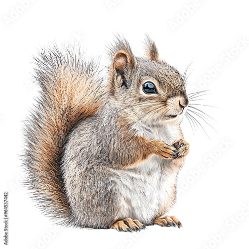 A cute, fluffy squirrel stands gracefully with its paws together, showcasing its vibrant fur and delightful expression.