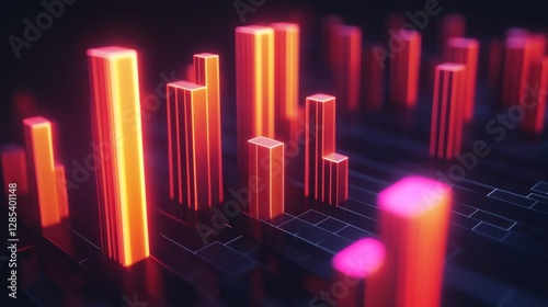 A D financial bar chart with sleek, glowing bars rising dramatically against a dark backdrop, with subtle light effects highlighting the data