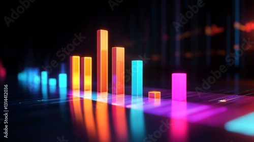 A D financial bar chart with sleek, glowing bars rising dramatically against a dark backdrop, with subtle light effects highlighting the data