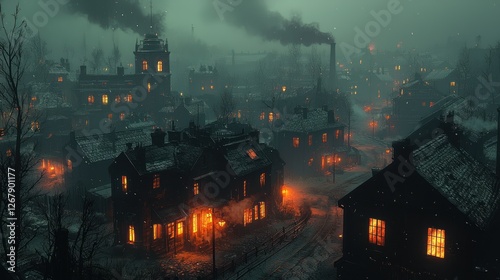 A Dark and Foggy Victorian Town at Night