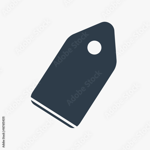 A dark blue tag icon on a light gray background.
