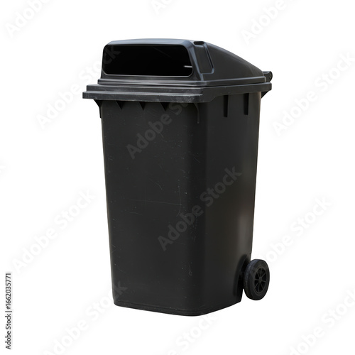 A Dark Gray Wheeled Garbage Bin With A Closed Isolated On White Background