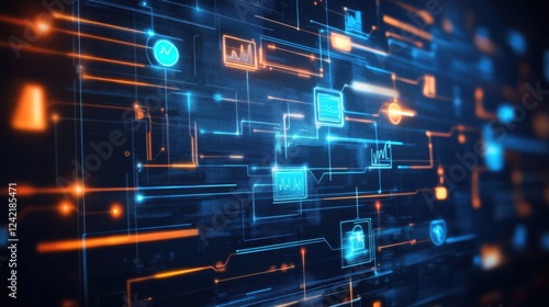 A dark-themed digital whiteboard with a well-detailed swimlane diagram for workflow automation.