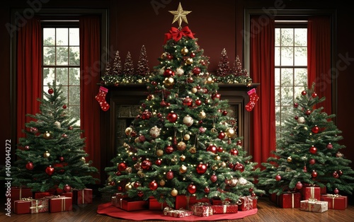 A decorated Christmas tree surrounded by presents in a cozy room setting.