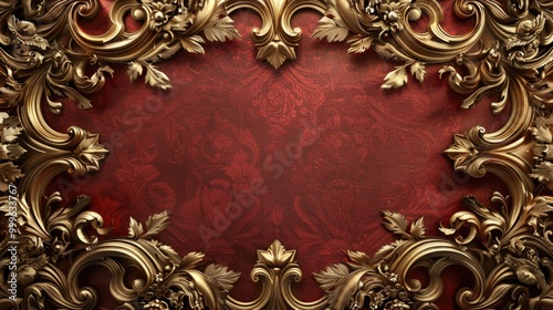 A decorative gold frame set against a vibrant red background
