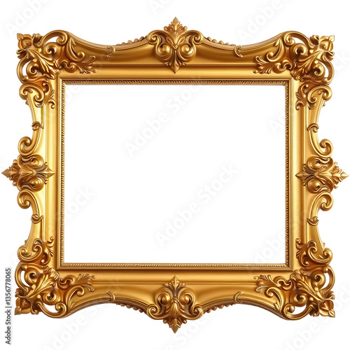 A decorative picture frame with ornate edges. png isolated background. transparent background.
