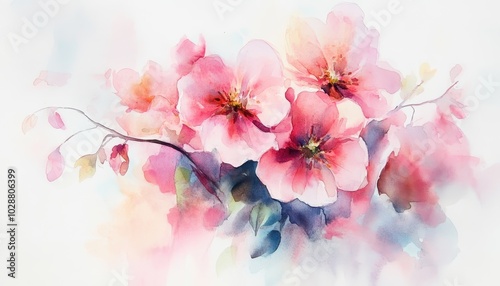 A delicate watercolor illustration of blooming flowers in soft pastel colors