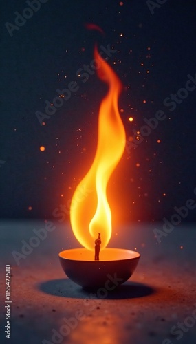 A delicate wax flame dances in a simple space, delicate flame, simple background, waxy texture
