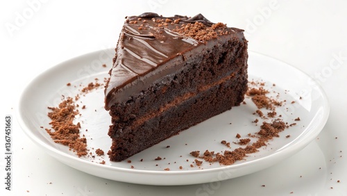 A delicious slice of brown chocolate cake with white cream on a plate