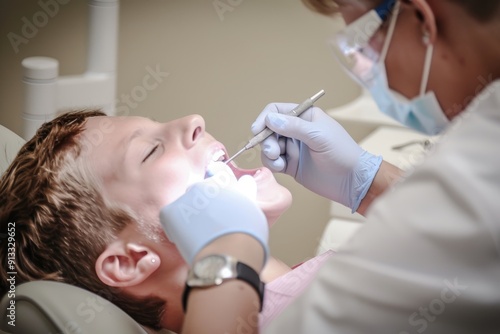 A dentist examining a patient's teeth and discussing treatment options