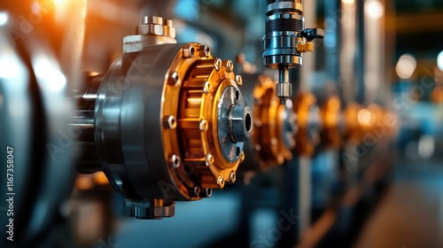 A detailed close-up of industrial machinery components, emphasizing their mechanical design with striking orange features and showcasing the complexity of modern engineering.