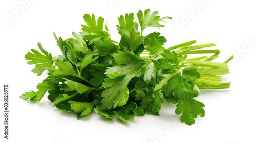 A detailed high-resolution image of fresh parsley, isolated on a white background with clipping path