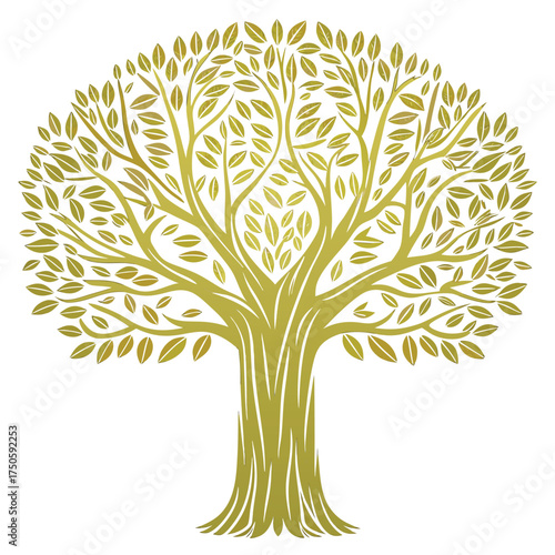 A detailed illustration of a lush green tree with abundant foliage