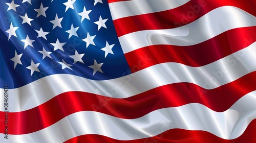 A detailed image depicting the American flag in motion, highlighting its colors and stars with a realistic fabric texture effect, capturing a sense of national pride.