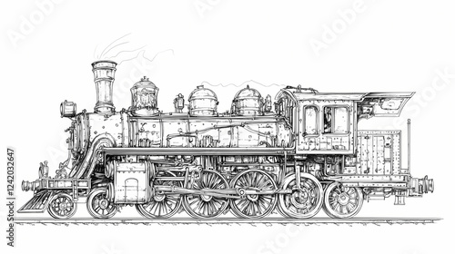 A detailed line drawing of an old steam locomotive. Steam & Diesel Punk. Illustration