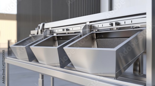 A detailed shot of an empty bucket conveyor, with plenty of space for text or logo above the system.