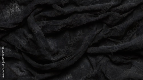 A detailed view of some black cloth fabric folds