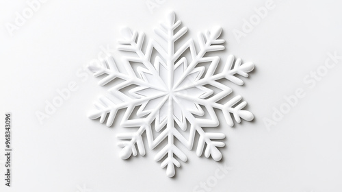 A detailed white snowflake design on a smooth surface, perfect for winter themes and holiday decorations.